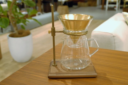 ヴィンテージ感のあるブリューワースタンドは、深みのある色調のウォールナットと、経年変化が愉しめる真鍮を組み合わせています。