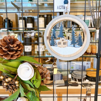 ウッドオーナメントはツリーに飾る以外にもドアに吊るしたり多用途に使えそうです。