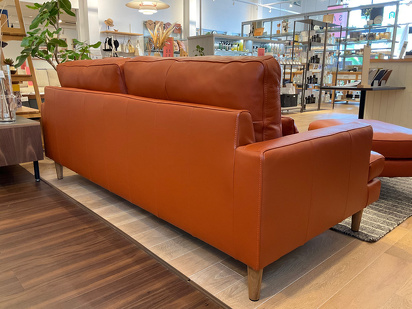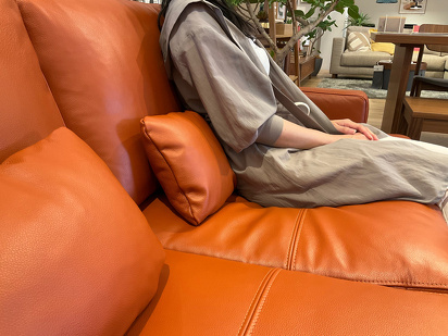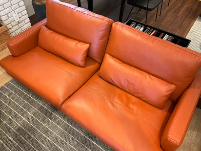 シート部分は中央のステッチをアクセントに、背面クッションには大判レザーを贅沢に使用しました。