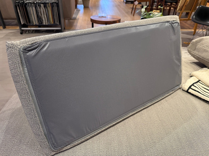 このソファの最大の特徴は、背もたれの位置を固定せず、自由に配置できる「バックフォームクッション」です。