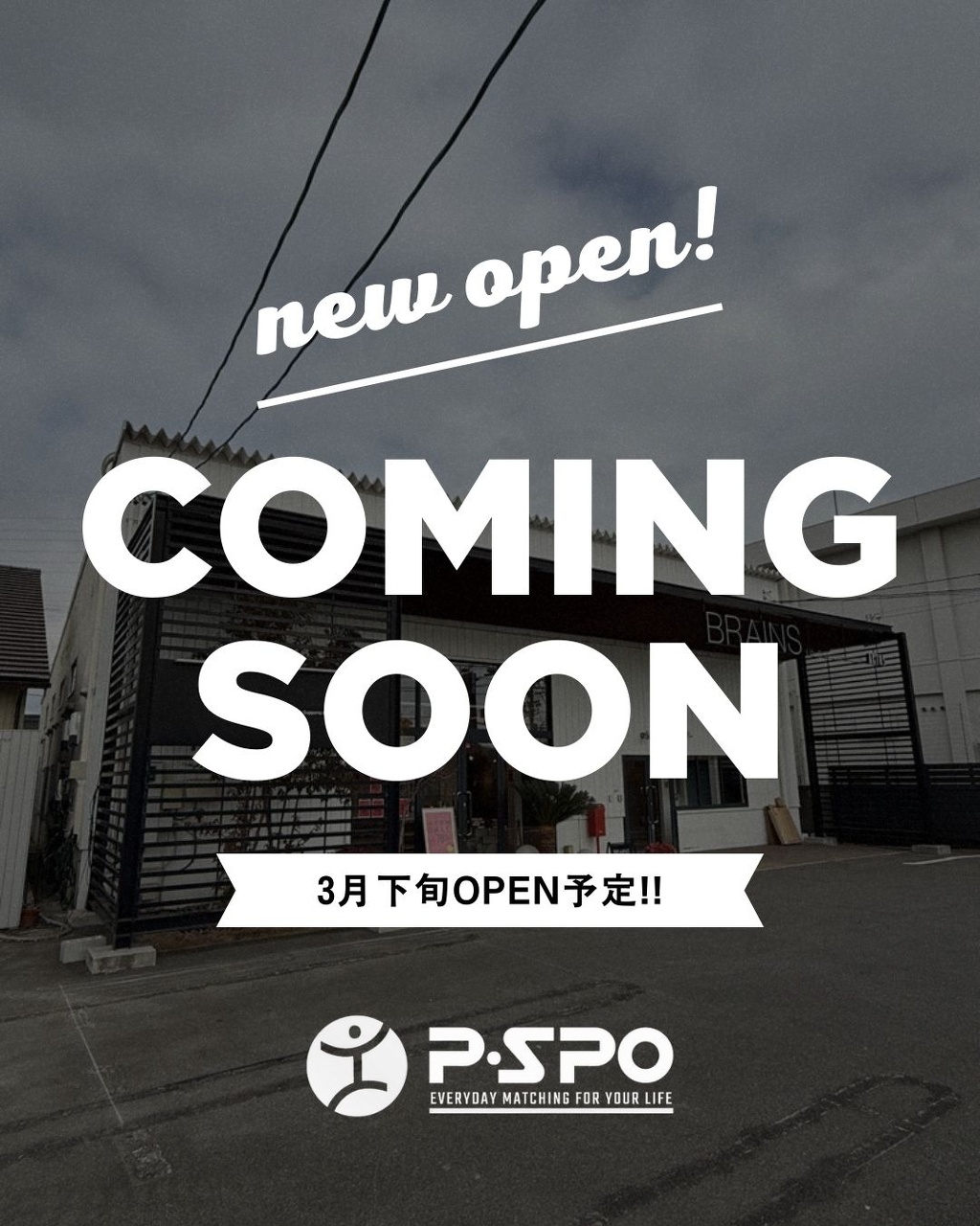 BRAINSがあった場所は新しくフィットネスジムと自習室の複合施設へと姿を変えて、4月OPENを予定しております。