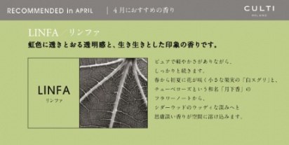 さて、香りにちなんで、、、CLUTI今月おすすめの香りはこちら。