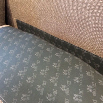 クッションの裏面はロゴの入ったオシャレな生地で