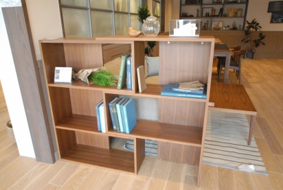 人気のウォールナットのカラーで落ち着いた雰囲気のシェルフです。