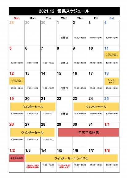 1月3日(月) 初売りセール ※営業時間変則(10:00~19:00)