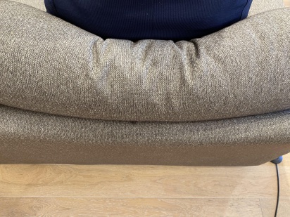 背から座面にかけて向かうカーブが包み込まれるようなホールド感を