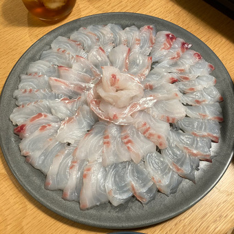 先日、実家からもらった真鯛を使って、例の皿に刺し身を盛りつけました。